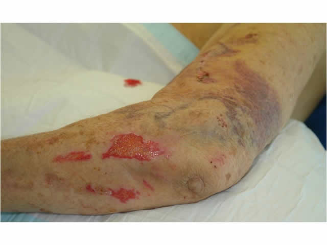 | Multiple medications | Some medications that make the blood less likely to clot (e.g. anticoagulants) or steroids (e.g. taken for conditions such as rheumatoid arthritis) make the skin thinner and more likely to tear. |
