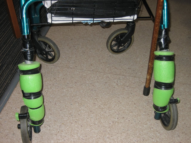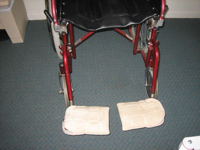 | Use protective padding on furniture and equipment | Pad bed rails, wheelchair arms and leg supports to reduce the risk of skin injuries. IMAGE - M2 10 Padded wheelchair supports IMAGE - M2 11 Padded wheelie walker |